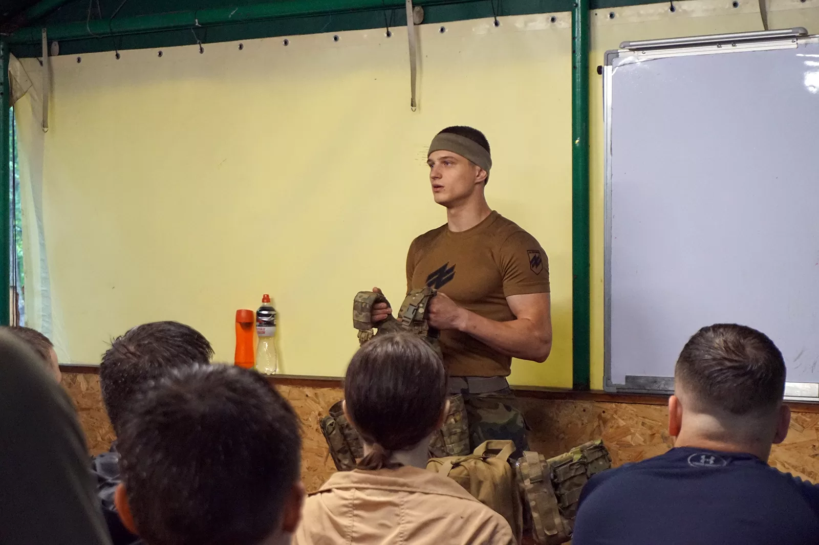 За словами діловодки центру комплектації рекрутингового центру «Азову» Ольги Вуз, інструктори вишколу займаються з особовим складом, проте до цивільного тренінгу підготувалися, зважаючи на те, що можуть прийти зовсім не підготовлені люди.