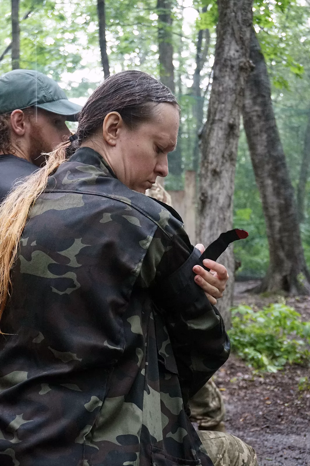Одна з учасниць вишколу Ольга прийшла на навчання з цікавістю поспілкуватися з бійцями «Азову» та спробувати себе в ролі солдата.