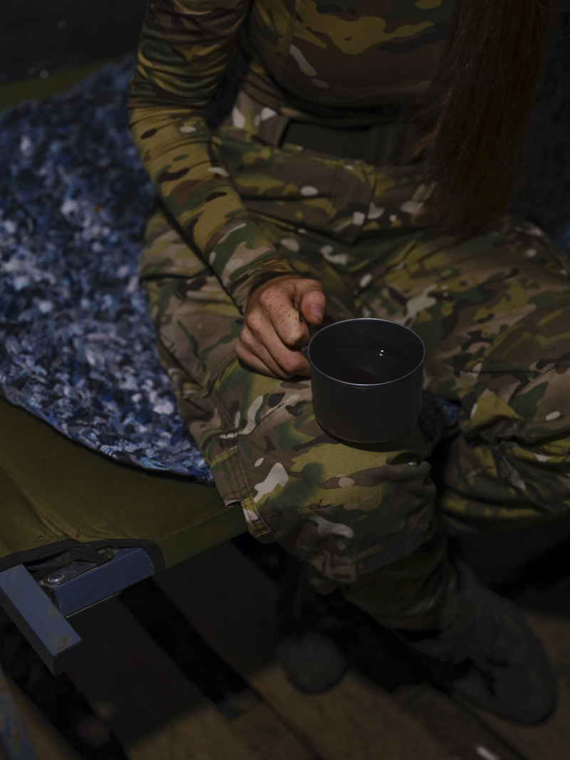 «Коли я приїхала в першу експедицію і почала знімати, то зрозуміла — немає великої різниці між чоловіком і жінкою на війні. Точніше, вона така сама, як і всюди в житті. Різниця хіба у кількості — жінок значно менше. Як і в житті, все залежить від того, наскільки тобі пощастило з оточенням. Звісно, жінки стикаються з дискримінацією через стать. Але чоловіки так само потрапляють не в ті підрозділи. І їм так само може бути складно, як і жінкам. Тож я почала уважніше придивлятися до того, що насправді змінює війна в житті військових та що об’єднує моїх героїнь», — розповідає авторка фотопроєкту.