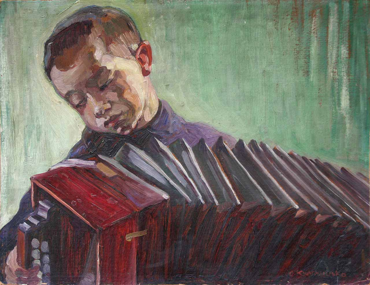Гравюра зображує смертельно пораненого молодого воїна, з рани якого проросла виноградна лоза, що стікає кров’ю у чашу з тризубом. Друга світова війна залишає по собі в доробку Кульчицької вісім ліногравюр і один дереворит, які фіксують у творчості нацистські злочини.