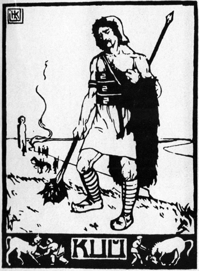 Свій талант художниця живила з джерел фольклору, а національна ідея у будь-якому прояві — від легендарних героїв до автентичного народного вбрання — була центром різноманітної графіки Олени Кульчицької.
