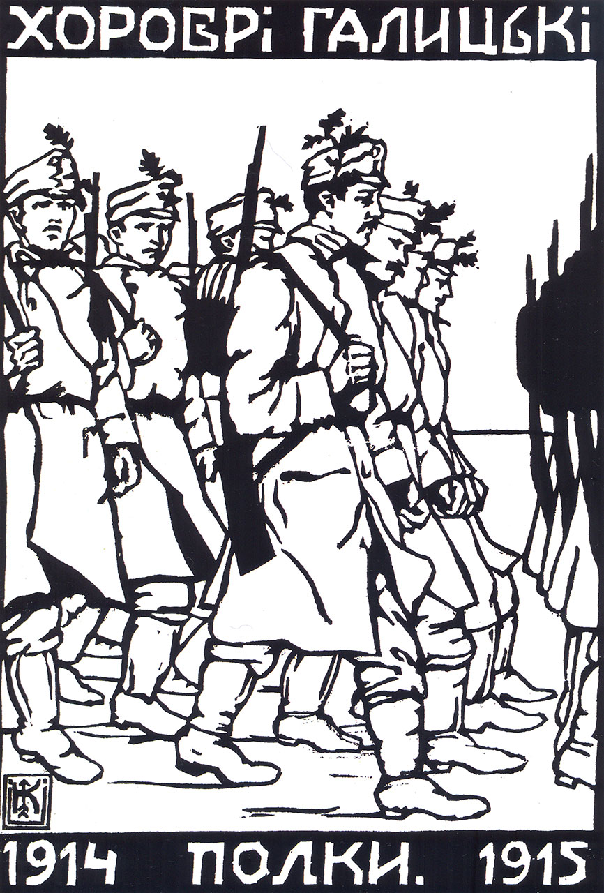 Серед глобальних робіт є також присвячені й українському народу. Кульчицька створила цикл із семи дереворитів «УСС. 1914–1915», до якого тематично також зараховують кольоровий лінорит «Стрілецька кров» 1916 року.