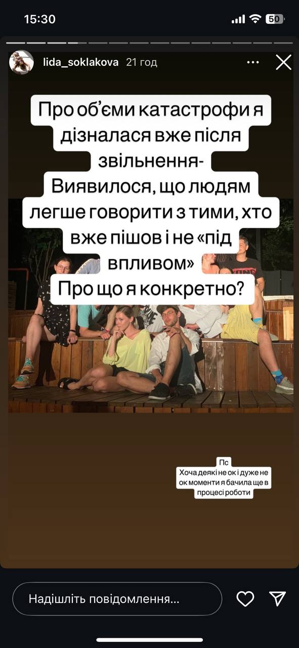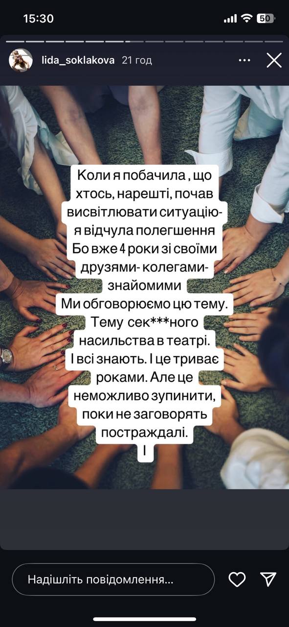 Колишня балетмейстерка Молодого театру Лідія Соклакова в Instagram Stories закликала інших ділитися власними історіями.