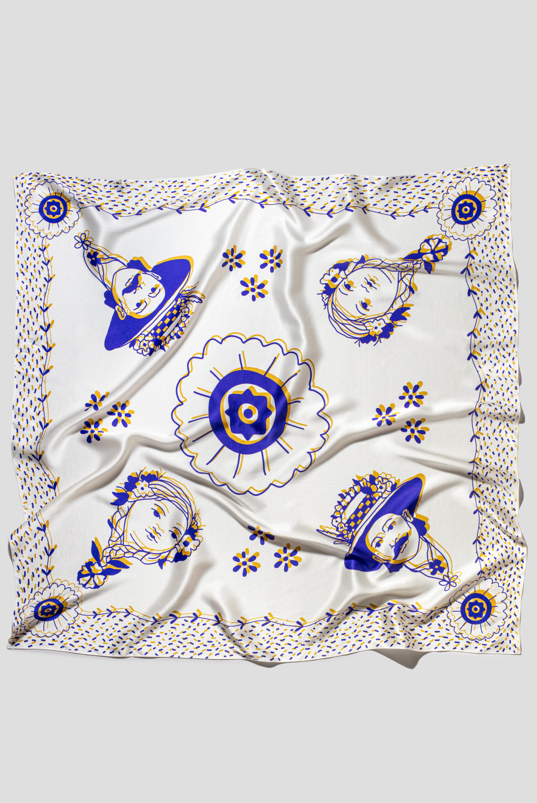 Візуальним натхненням для шовкових хусток стали народні традиції, символіка обрядового танцю «Подоляночка» та образ закоханої пари. Ілюстрації народились із любові до символів, рухів і ритуалів, які зберегли в собі силу предків і ніжність щоденних моментів.