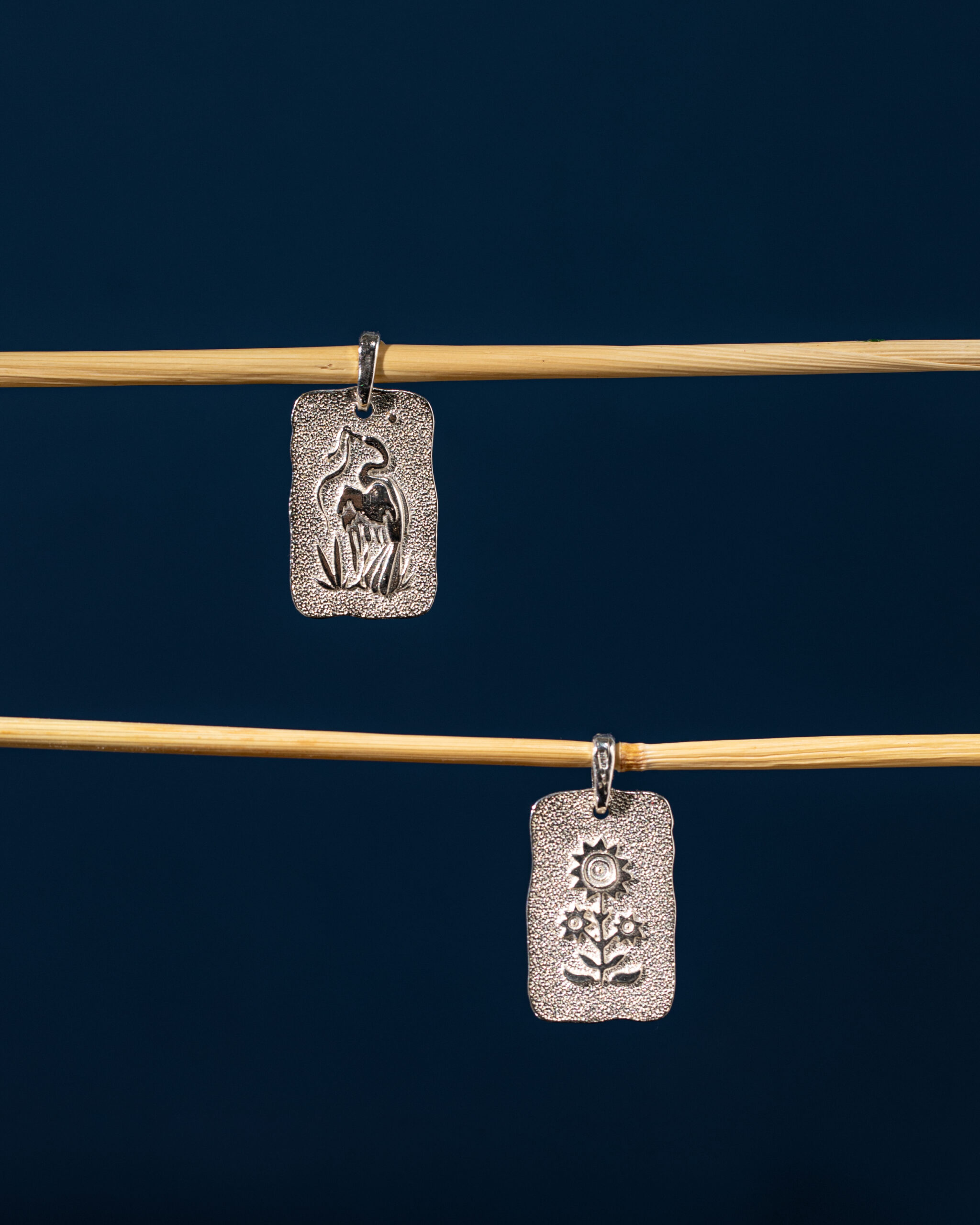 Двосторонні підвіски-жетони із мальвою з одного боку та ластівкою з іншого створені із полірованого срібла — матеріалу, що символізує чистоту і вічність. Квітка є символом домашнього затишку, тепла та родинних цінностей, а ластівка несе любов до рідного краю та оберігає дім.