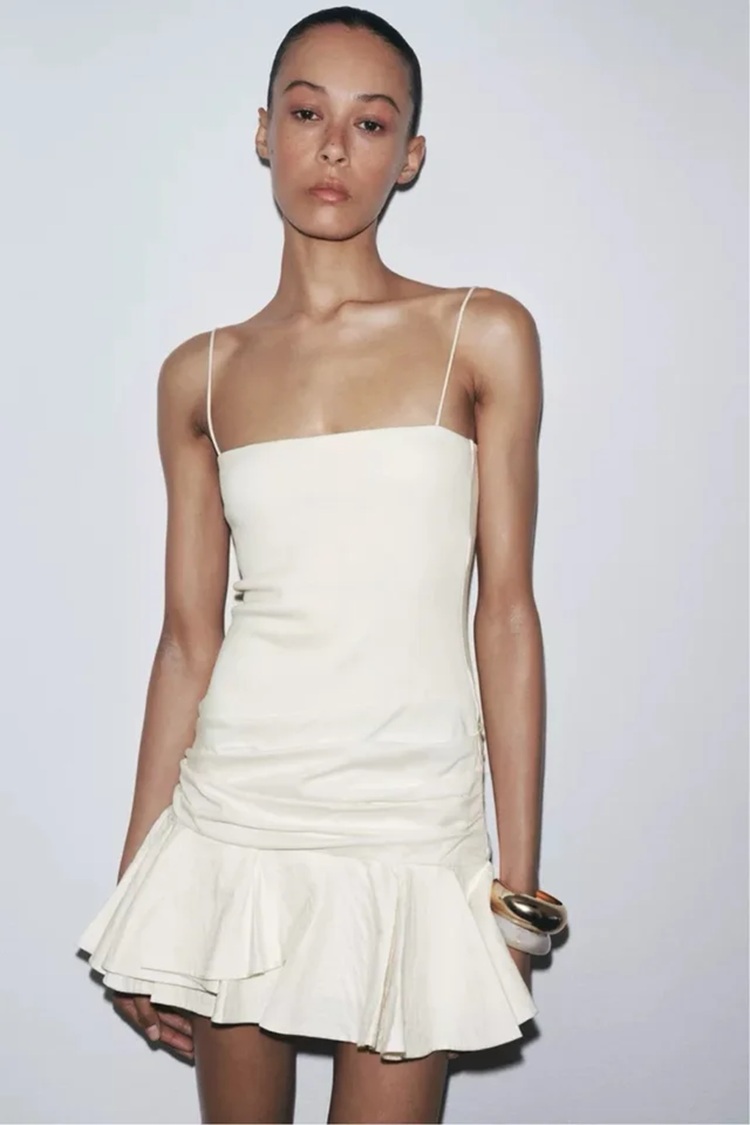 Як повідомляє BBC, йдеться про фото моделі у білій оверсайз-сорочці з великою кишенею, а також ще одне зображення моделі в білій короткій сукні-волані на тонких бретельках.