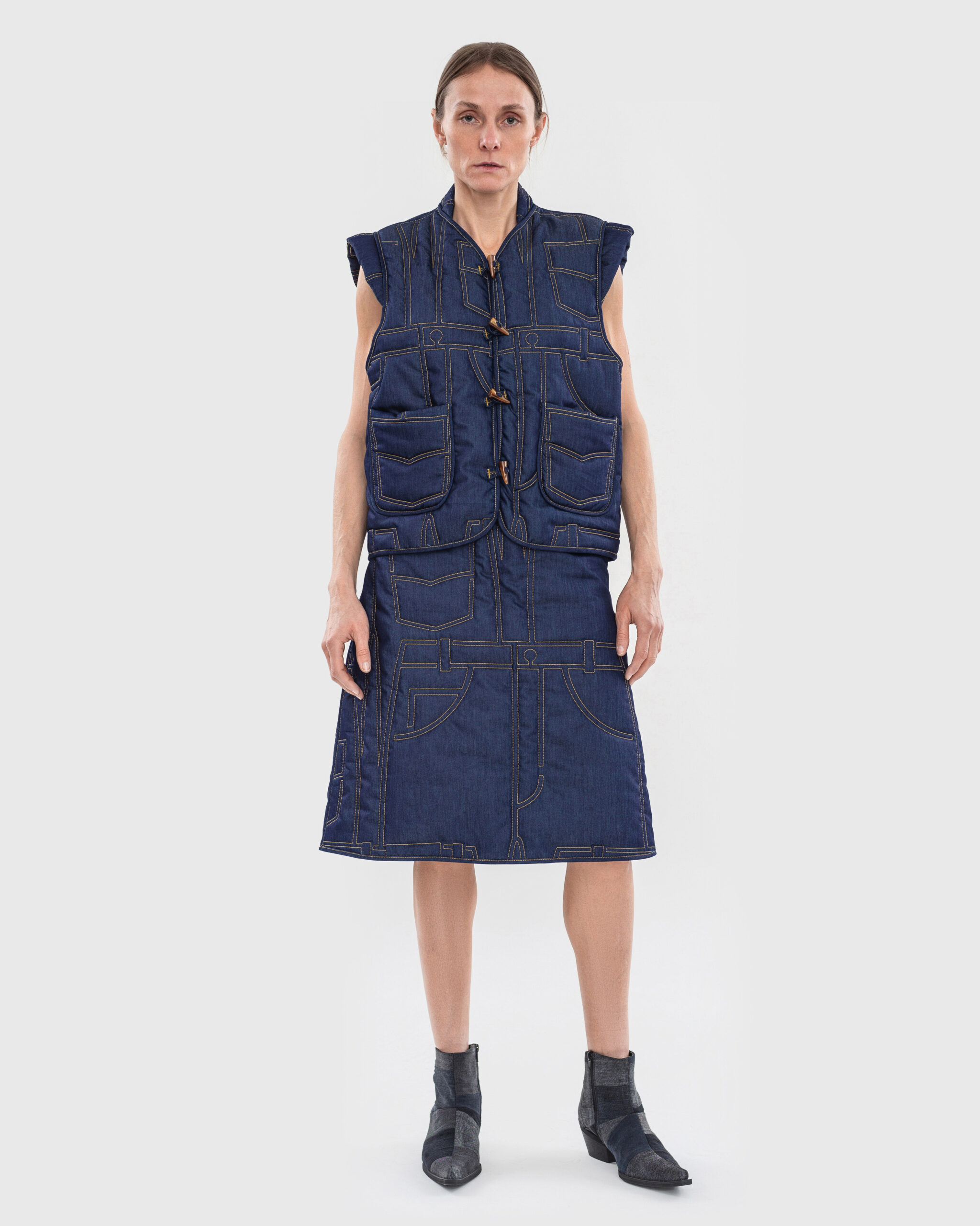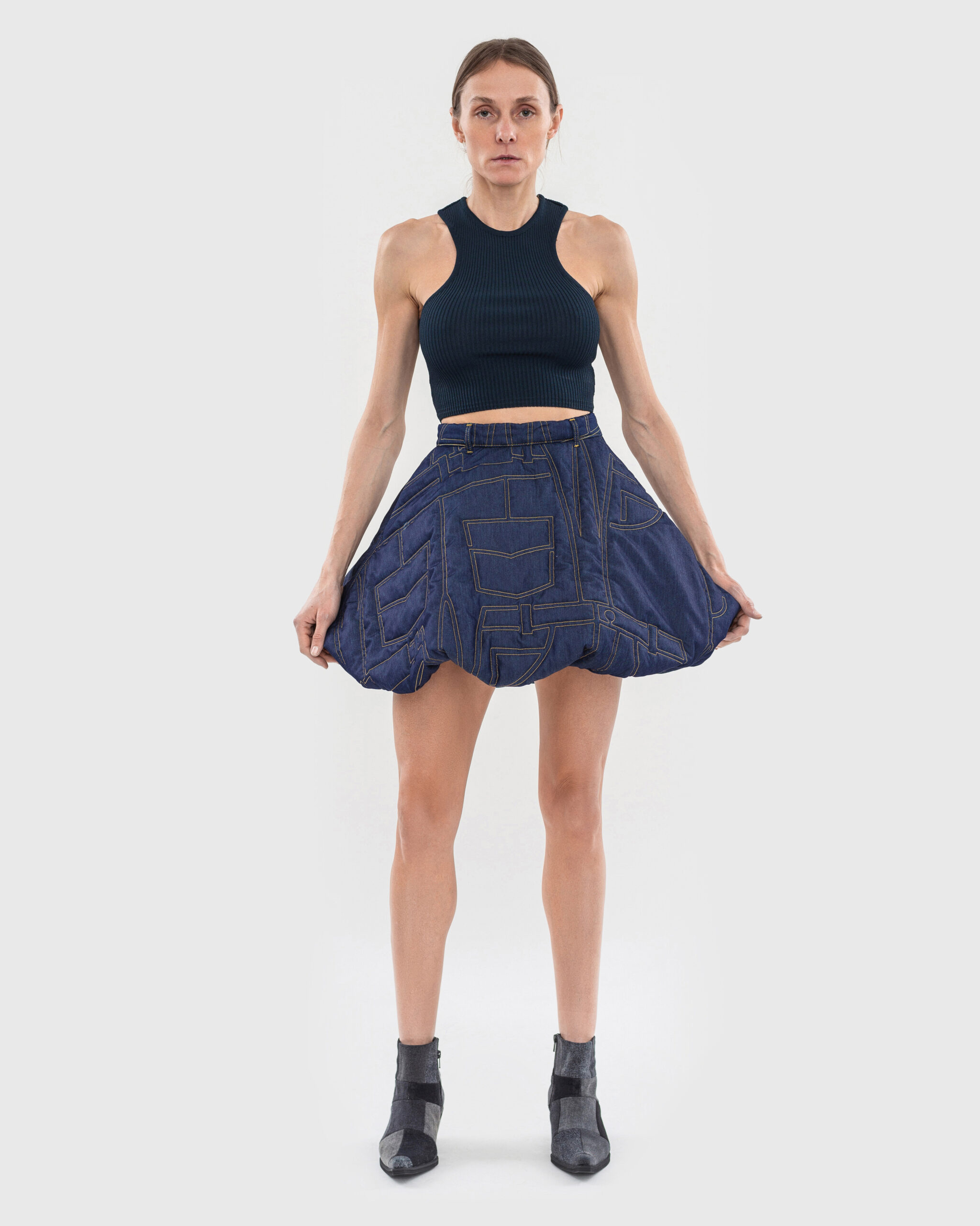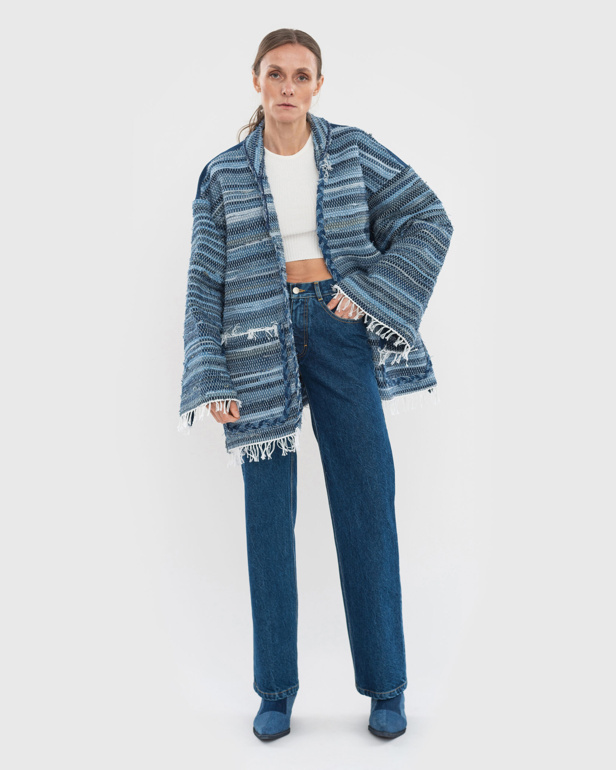 До колекції увійшли речі у техніці Zero Waste, створені у співпраці з ткацькою спільнотою Чернігівщини, що підкреслює відданість ідеї апсайклінгу та підтримку сталого розвитку. Джинсові елементи були виткані на ручних верстатах із відходів деніму та використані для створення спідниць, джинсів і курток.